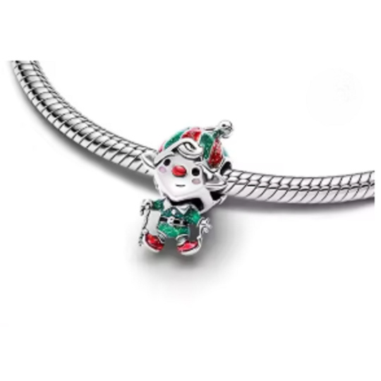 Charm Sterlingové stříbro 925 Vánoční skřítek Elf - vánoční Santa Clausův pomocník, korálek na náramek vánoce