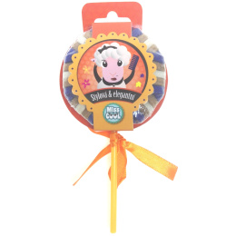 Sada 20 barevných gumiček do vlasů bez kovové spojky v atraktivním balení v podobě lízátka. Díky plochému tvaru gumičky nesklouzávají z vlasů.