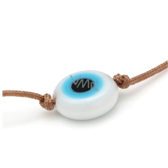 Modré oko náramek provazový tkaný hnědý, zlatá barva kulička