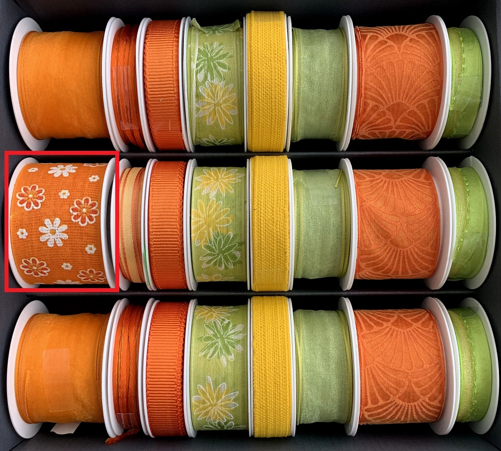 Nekupto Stuha látková Oranžová s kvítky 2 m x 40 mm
