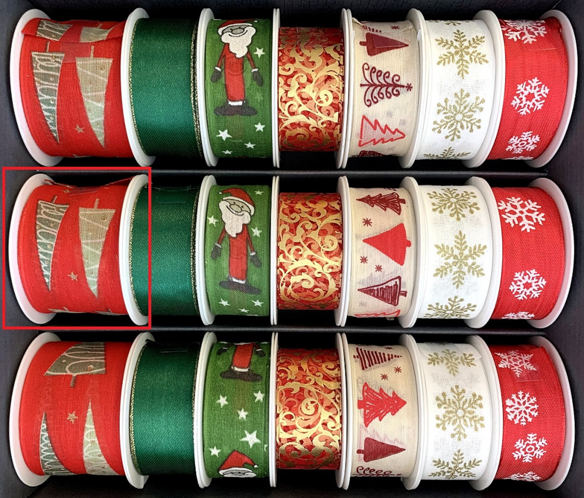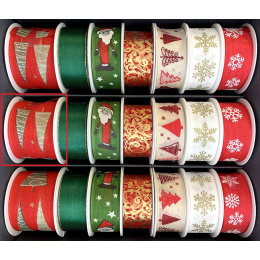 Nekupto Stuha látková vánoční Červená se stromky 40 mm x 2 m