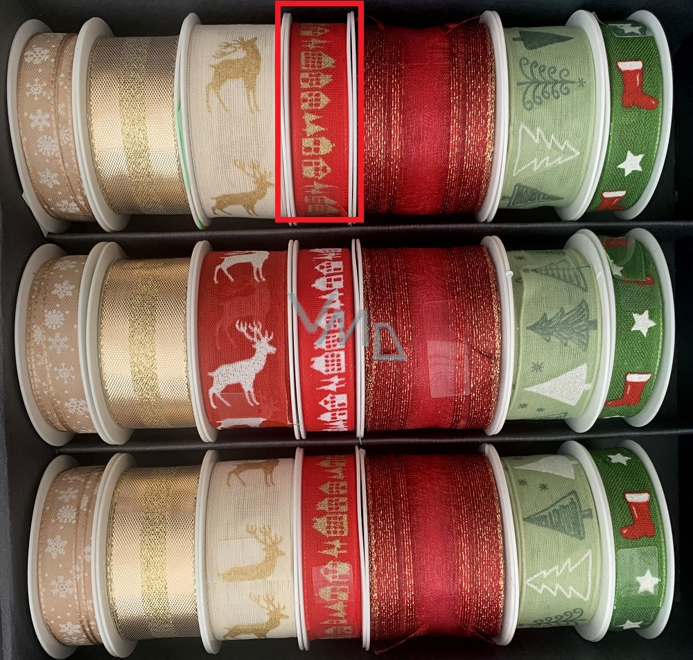 Nekupto Stuha látková vánoční Červená zlaté domečky 15 mm x 3 m