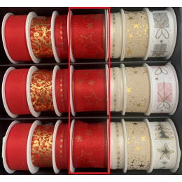 Nekupto Stuha látková vánoční Červená zlaté hvězdičky 40 mm x 2 m