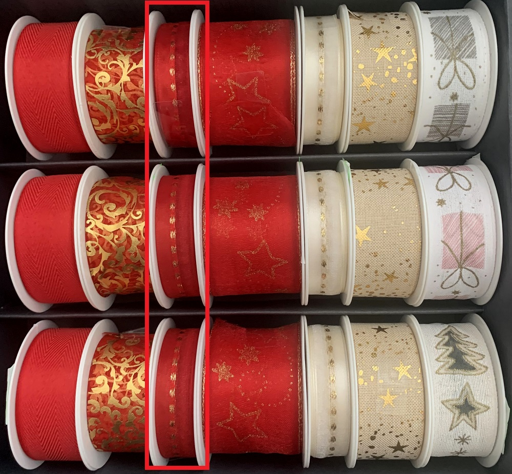 Nekupto Stuha látková vánoční Červená zlaté tečky 15 mm x 3 m
