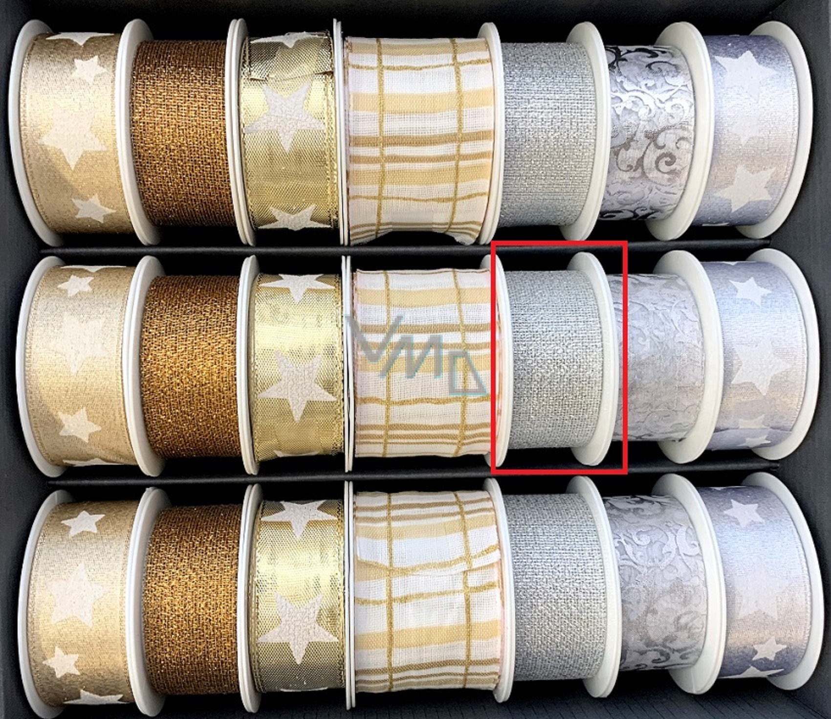 Nekupto Stuha látková vánoční Stříbrná pavučina 25 mm x 2,5 m