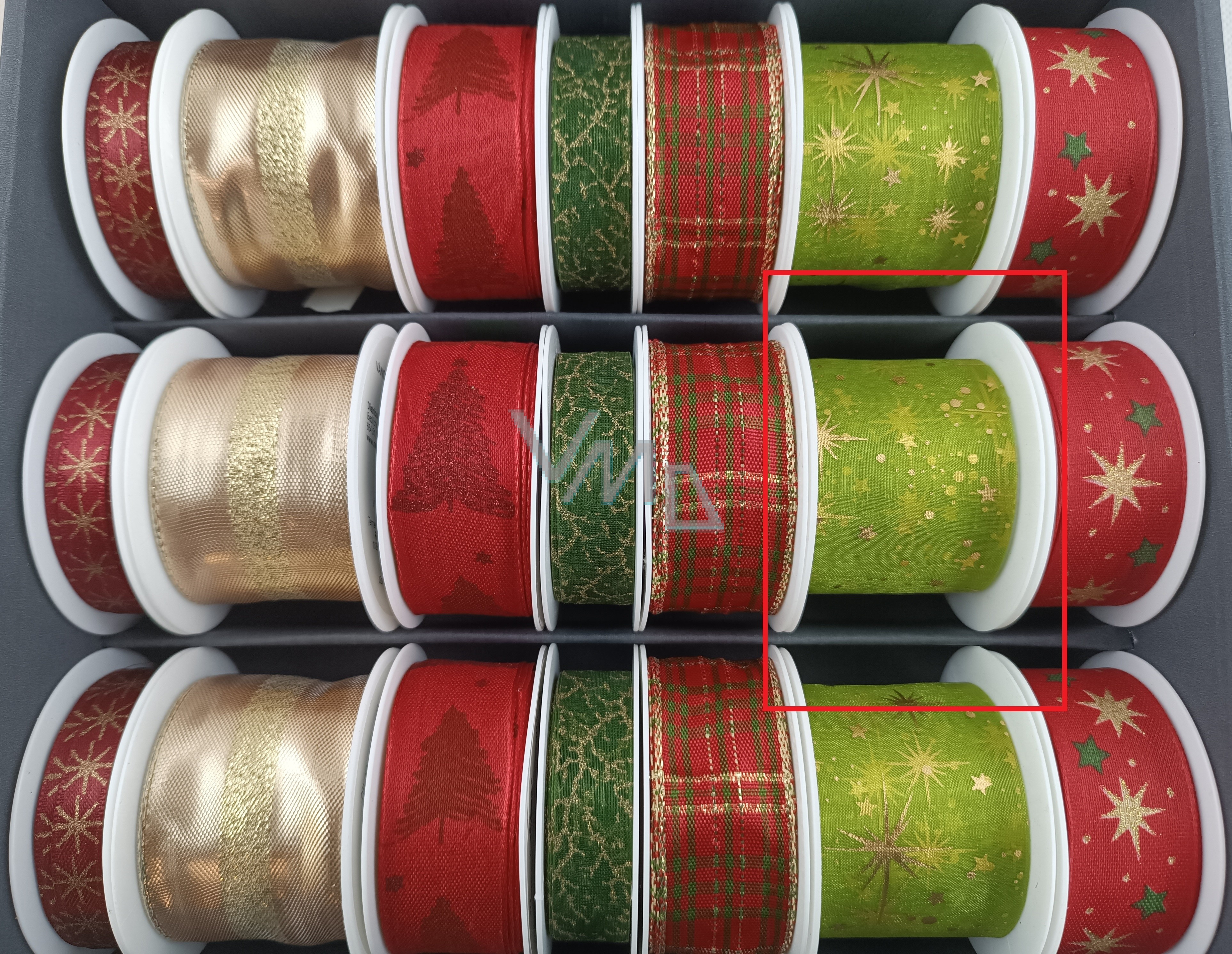 Nekupto Stuha látková vánoční Zelená organza hvězdičky 40 mm x 2 m