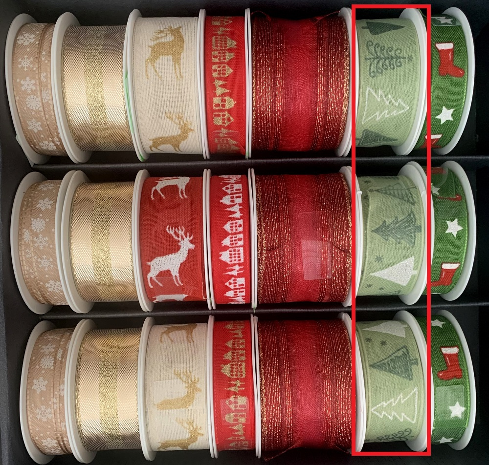 Nekupto Stuha látková vánoční Zelená stromečky 25 mm x 2,5 m