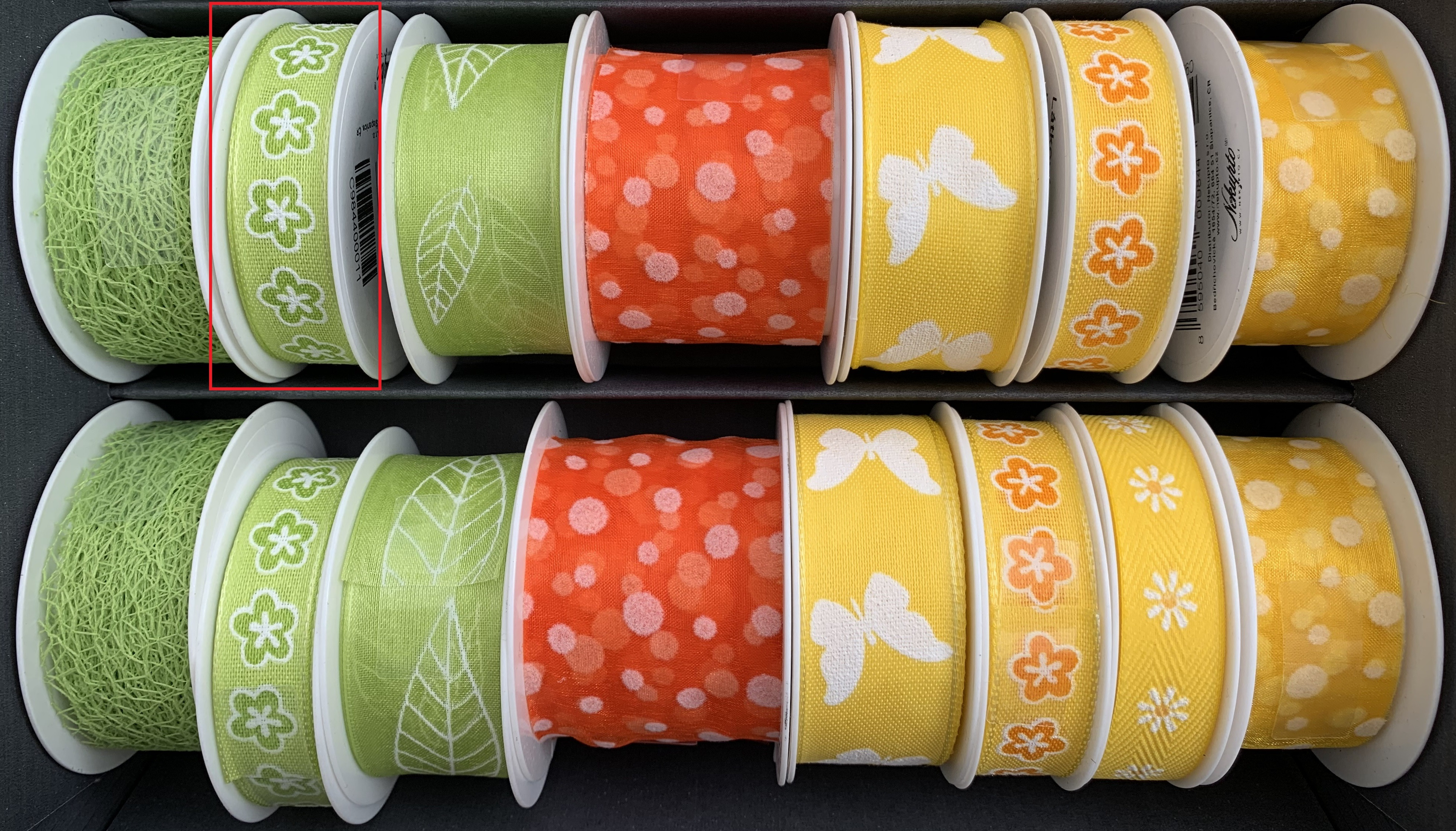Nekupto Stuha látková zelená s bílými kvítky 3,5 m x 15 mm