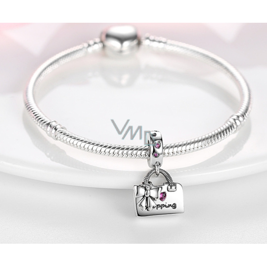 Charm Sterlingové stříbro 925 Chic style - Kabelka s mašlí - Miluji nákupy, přívěsek na náramek, zájmy