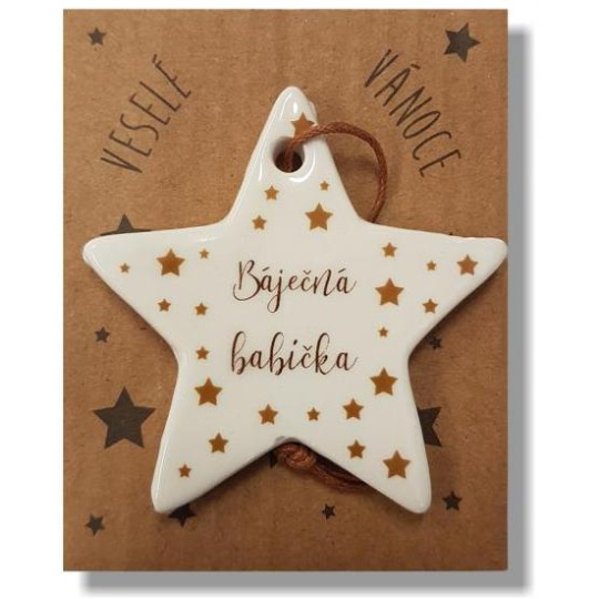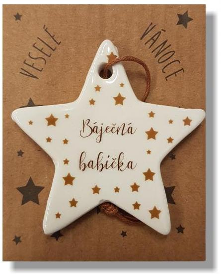 Nekupto Vánoční keramická dekorace s nápisem Báječná babička 6 x 5 cm