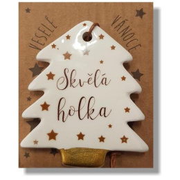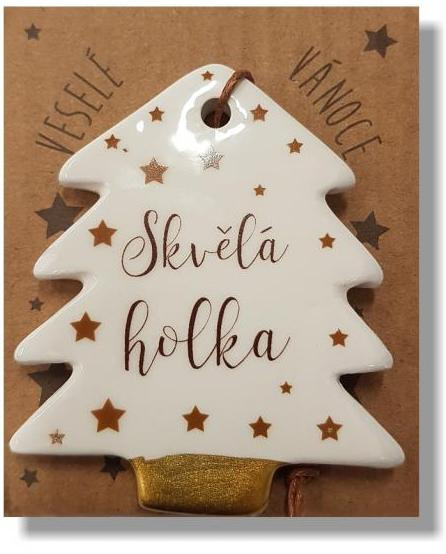 Nekupto Vánoční keramická dekorace s nápisem Skvělá holka 7 x 5 cm