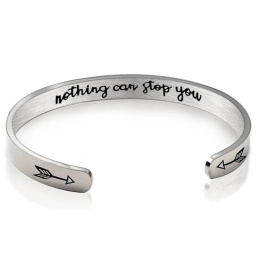 Nerezová ocel náramek stříbrný s gravírováním Nic tě nemůže zastavit, otevřená manžeta, 4 mm