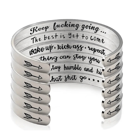 Motivační náramek je vyroben z Hypoalergenní nerezové oceli, je odolný, pevný, ale zároveň lehký. Je dostatečně flexibilní a s jemným stiskem nebo mírným roztažením jej lze nastavit pro většinu velikostí zápěstí. Věnujte originální dárek a vyjádřete tak lásku či vděčnost obdarovanému!