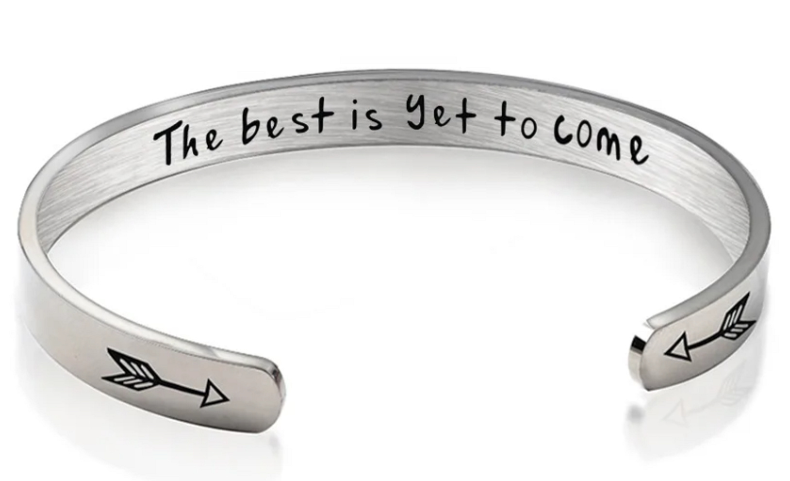 Nerezová ocel náramek stříbrný s gravírováním To nejlepší teprve přijde, otevřená manžeta, 4 mm