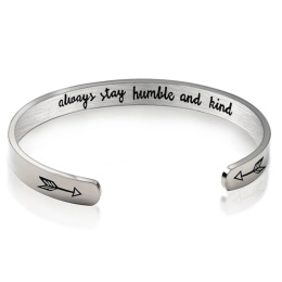 Nerezová ocel náramek stříbrný s gravírováním Vždy vyprávěj..., otevřená manžeta, 4 mm