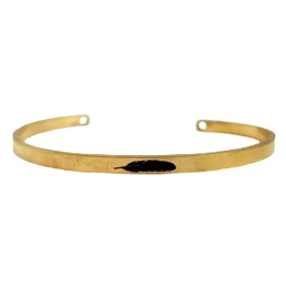 Nerezová ocel náramek zlatý s gravírováním Pírko, otevřená manžeta, 4 mm