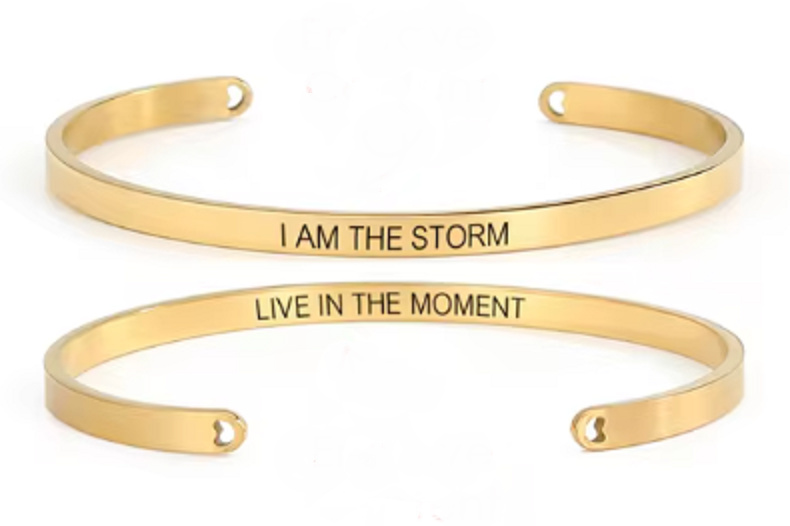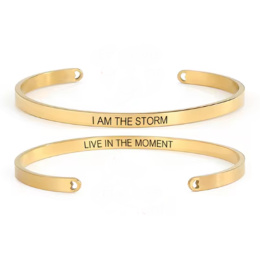 Nerezová ocel náramek pozlacený s oboustranným gravírováním Já jsem bouře, otevřená manžeta, 4 mm
