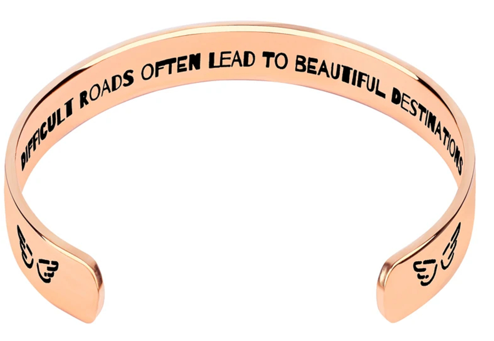 Nerezová ocel náramek pozlacený s gravírováním Těžké cesty..., otevřená manžeta, 2,5 mm