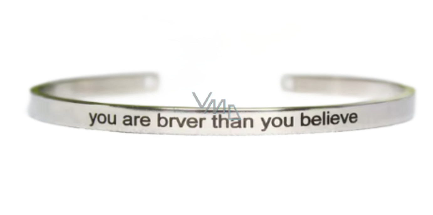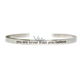 Nerezová ocel náramek stříbrný s gravírováním Jsi statečnější..., otevřená manžeta, 4 mm