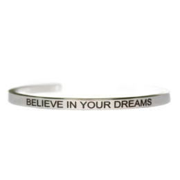 Nerezová ocel náramek stříbrný s gravírováním Věř ve své sny, otevřená manžeta, 4 mm