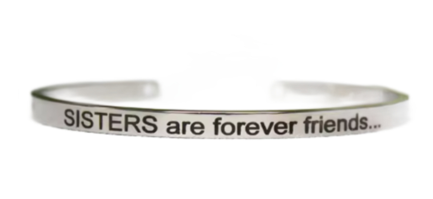 Nerezová ocel náramek stříbrný s gravírováním Sestry jsou přátelé navždy, otevřená manžeta, 4 mm
