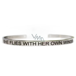 Nerezová ocel náramek stříbrný s gravírováním Létá s vlastními křídly, otevřená manžeta, 4 mm