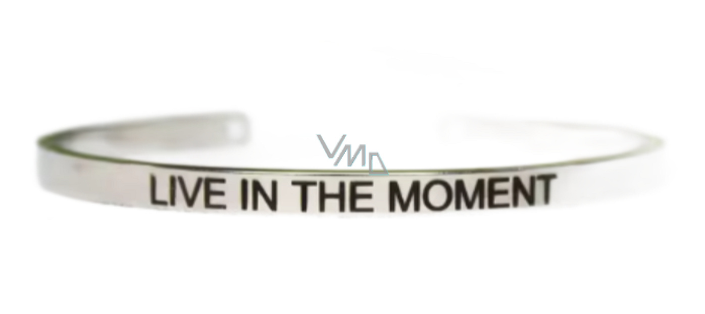 Nerezová ocel náramek stříbrný s gravírováním Žij okamžikem, otevřená manžeta, 4 mm