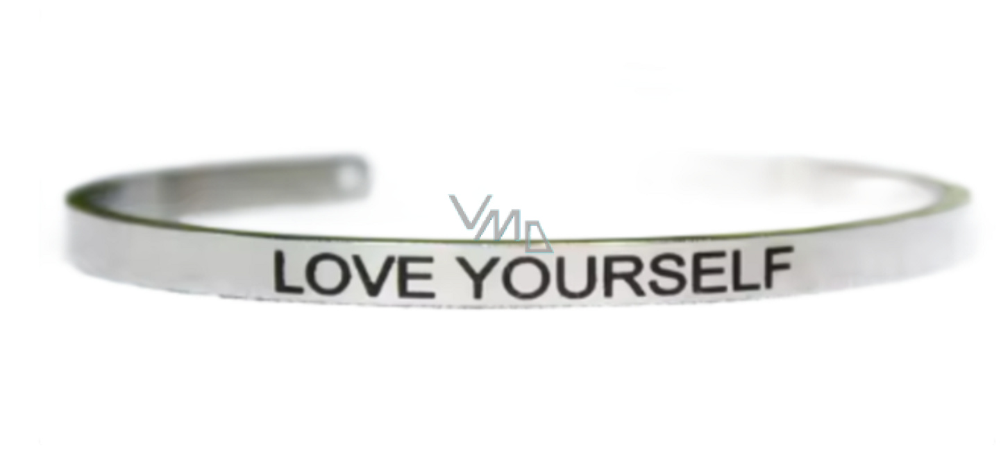 Nerezová ocel náramek stříbrný s gravírováním Miluj sám sebe, otevřená manžeta, 4 mm