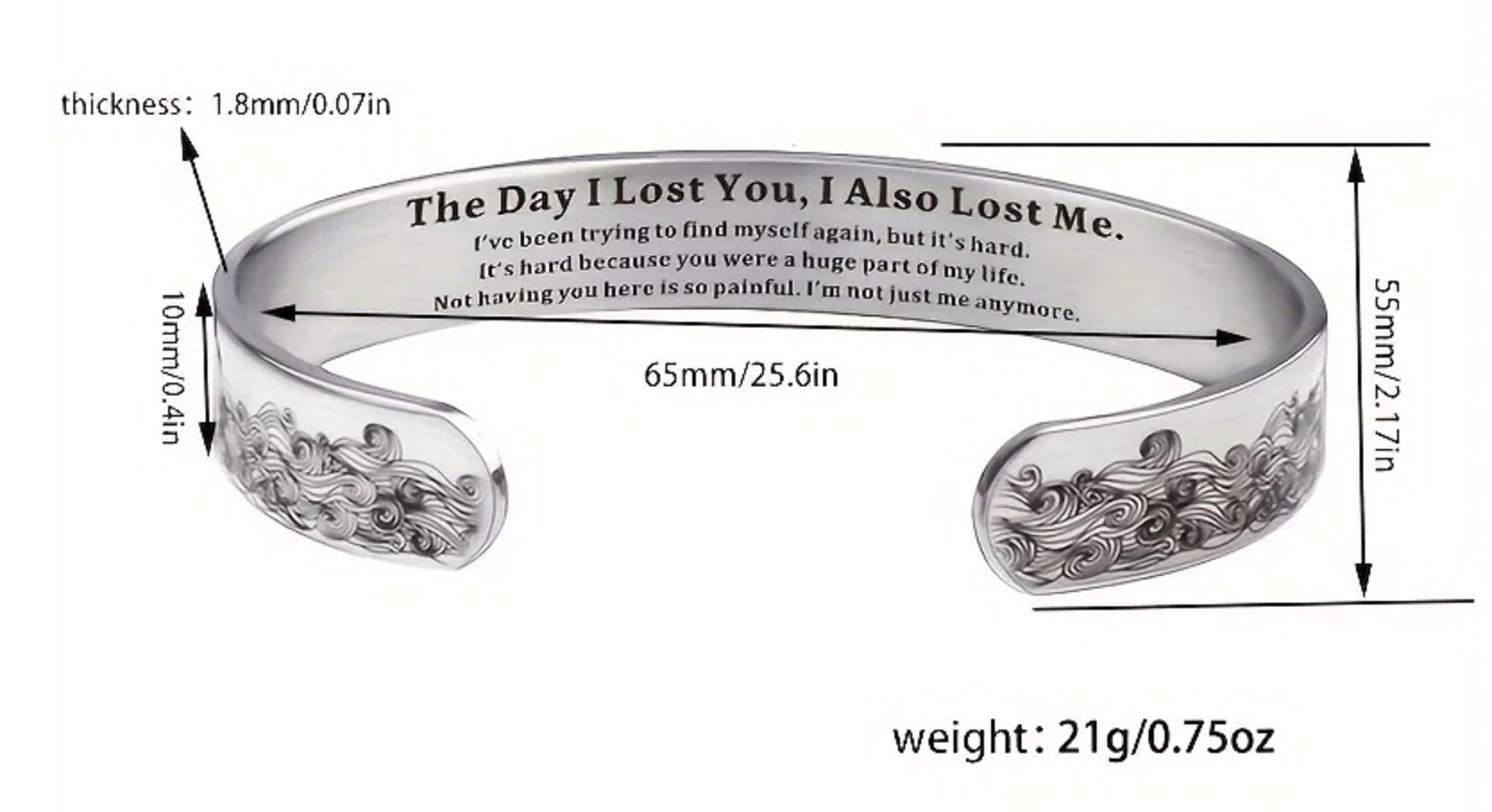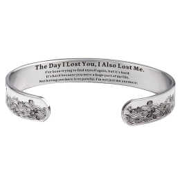 Nerezová ocel náramek stříbrný s gravírováním Den kdy jsem tě ztratil, otevřená manžeta, 10 mm