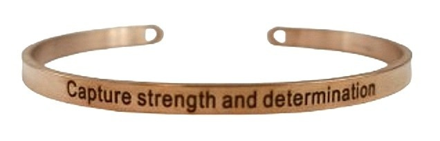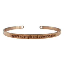 Nerezová ocel náramek růžové zlato s gravírováním Zachytit sílu a odhodlání, otevřená manžeta, 4 mm