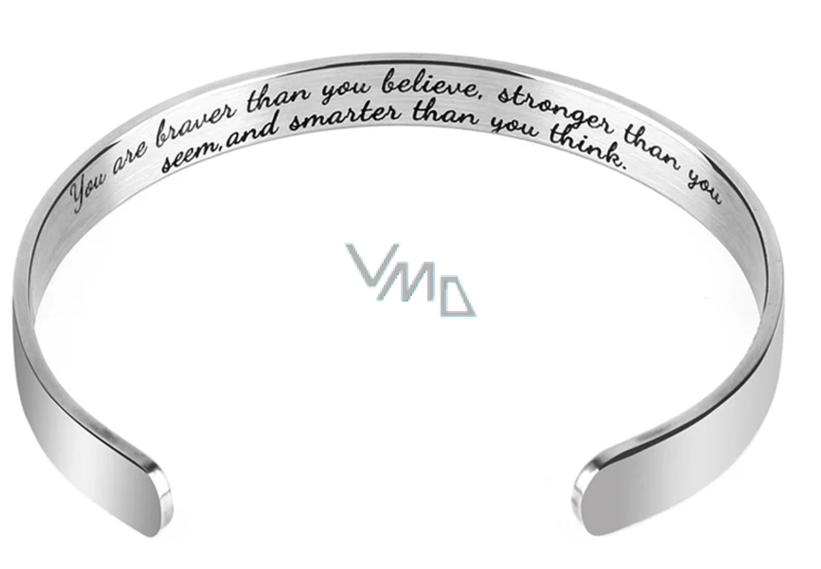Motivační náramek je vyroben z Hypoalergenní nerezové oceli, je odolný, pevný, ale zároveň lehký. Je dostatečně flexibilní a s jemným stiskem nebo mírným roztažením jej lze nastavit pro většinu velikostí zápěstí. Věnujte originální dárek a vyjádřete tak lásku či vděčnost obdarovanému!