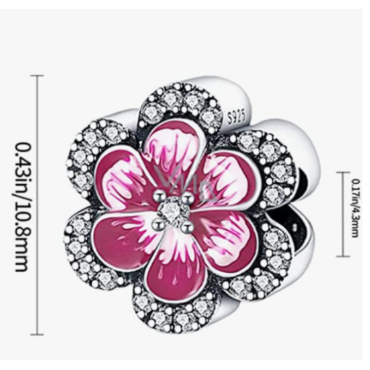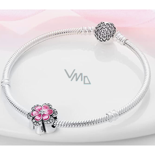 Charm Sterlingové stříbro 925 Růžová květina, maceška, korálek na náramek květina
