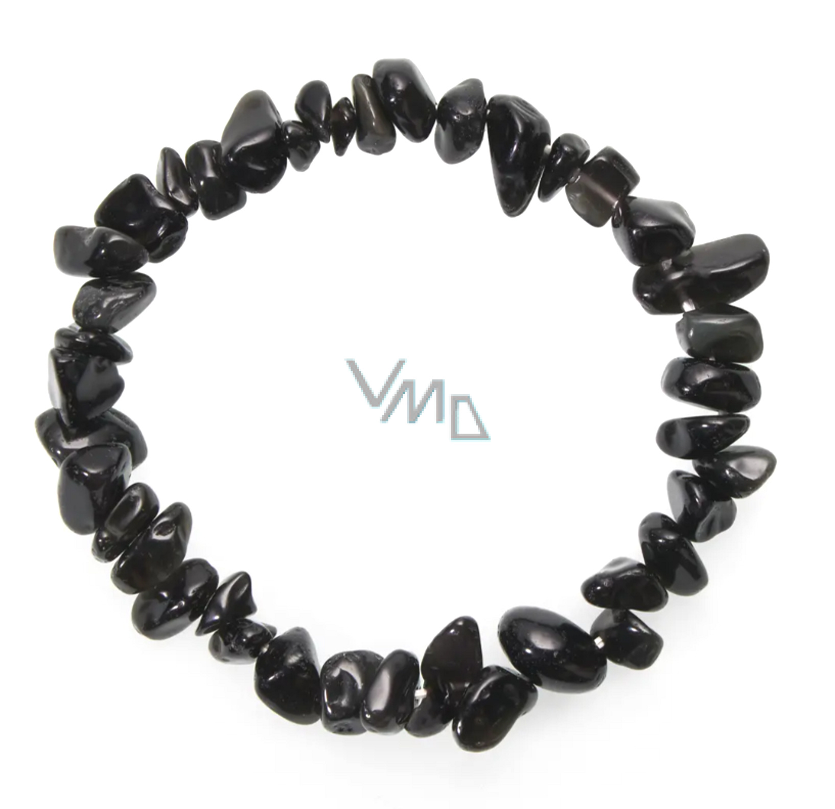 Obsidián černý náramek elastický sekaný přírodní kámen 19 cm, kámen záchrany