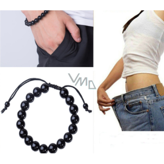 Obsidian Fitness, Hubnutí náramek přírodní kámen, ručně pletený, nastavitelná velikost, kulička 10 mm, kámen záchrany