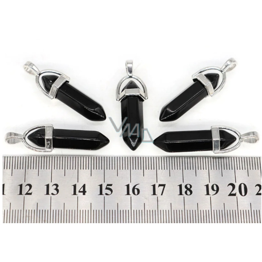 Obsidian kyvadlo šestihran přívěsek přírodní kámen 41 x 13 mm, kámen záchrany