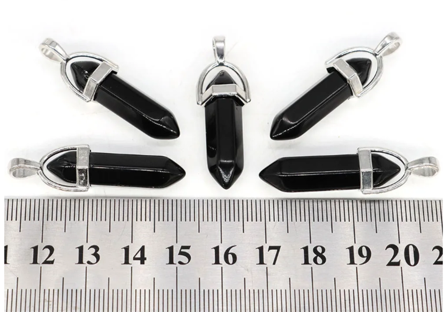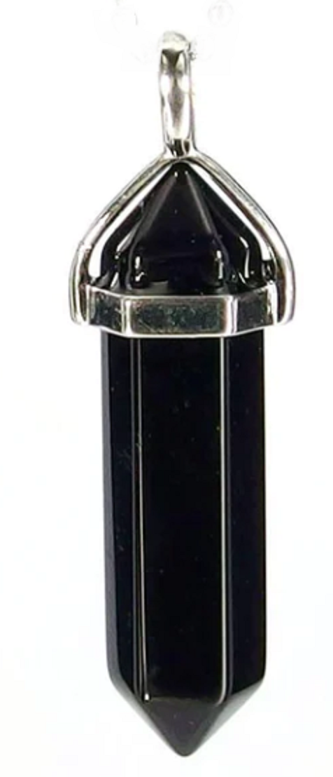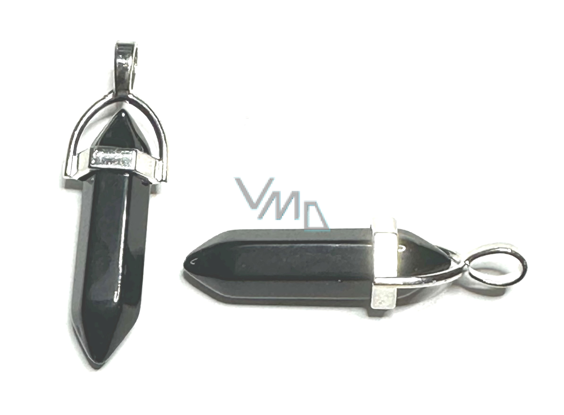 Obsidian kyvadlo šestihran přívěsek přírodní kámen 41 x 13 mm, kámen záchrany
