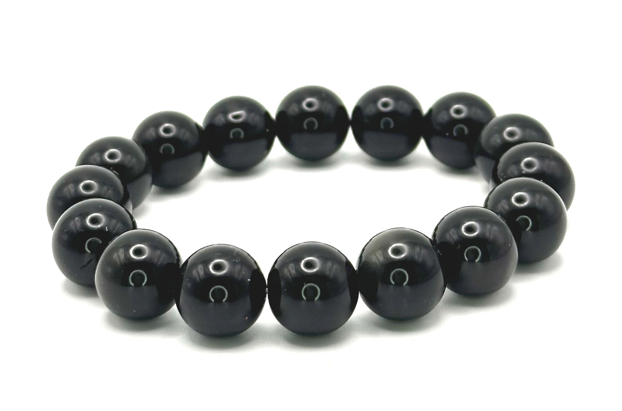 Obsidian náramek elastický přírodní kámen, kulička 12 mm / 16 - 17 cm, bez hranic