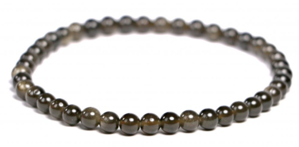 Obsidian náramek elastický přírodní kámen, kulička 4 mm / 16 - 17 cm, kámen záchrany