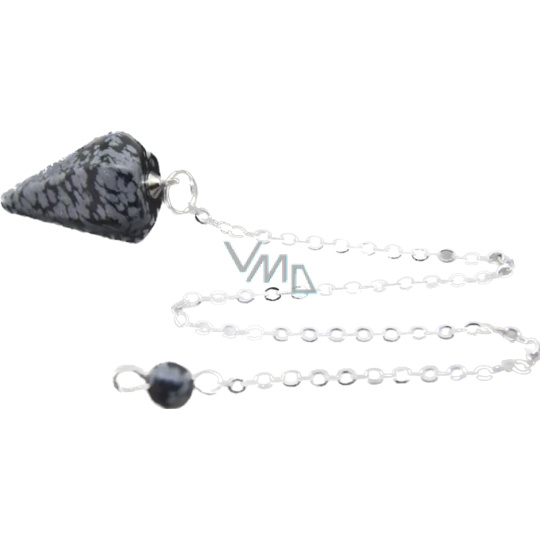 Obsidian obláčkový kyvadlo přírodní kámen 2,5 cm + 18 cm řetízek s korálkou, kámen záchrany