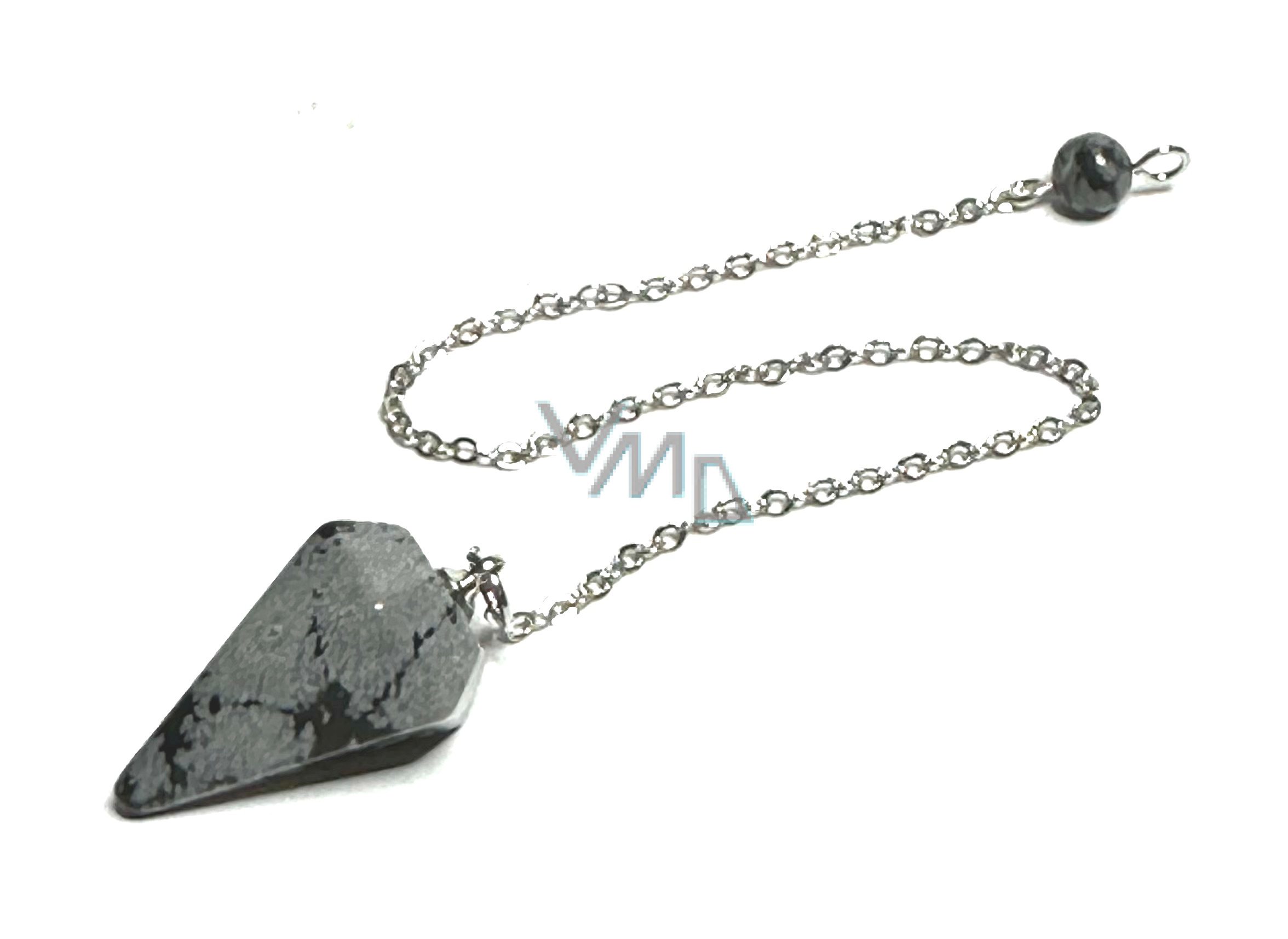 Obsidian obláčkový kyvadlo přírodní kámen 2,5 cm + 18 cm řetízek s korálkou, kámen záchrany