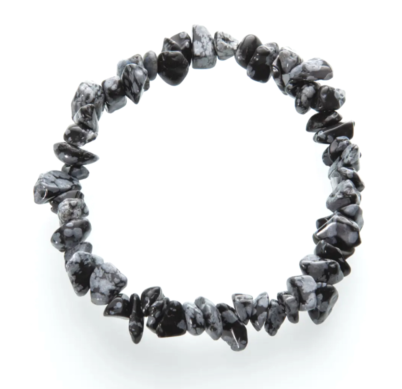 Obsidián vločkový náramek elastický sekaný přírodní kámen 19 cm, kámen záchrany
