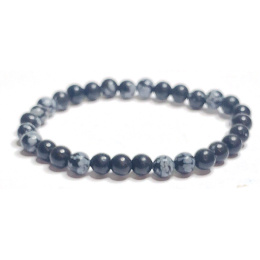 Obsidian vločkový náramek elastický přírodní kámen, kulička 6 mm / 16 - 17 cm, kámen záchrany