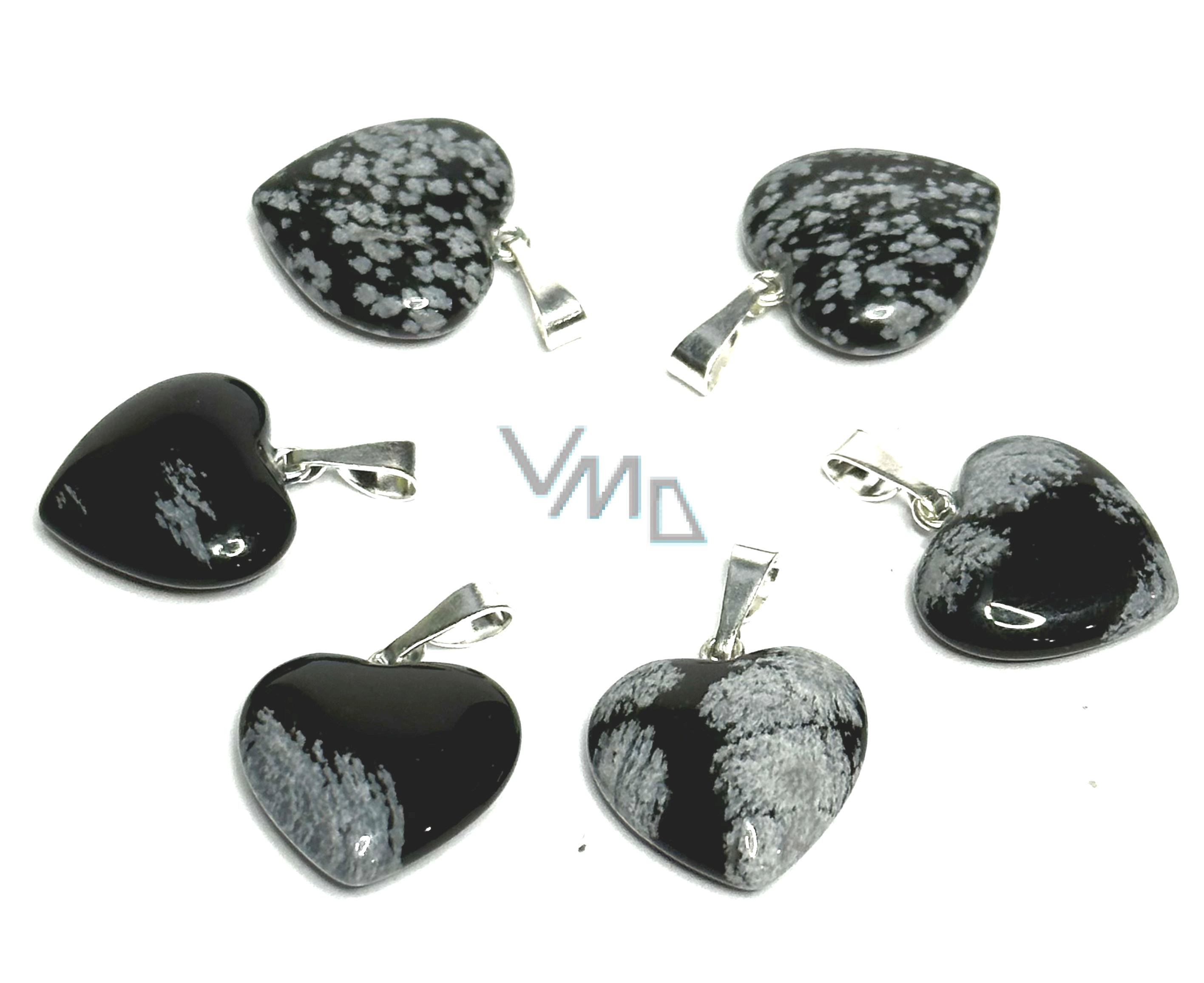 Obsidián vločkový Srdce přívěsek přírodní kámen 15 mm, kámen záchrany