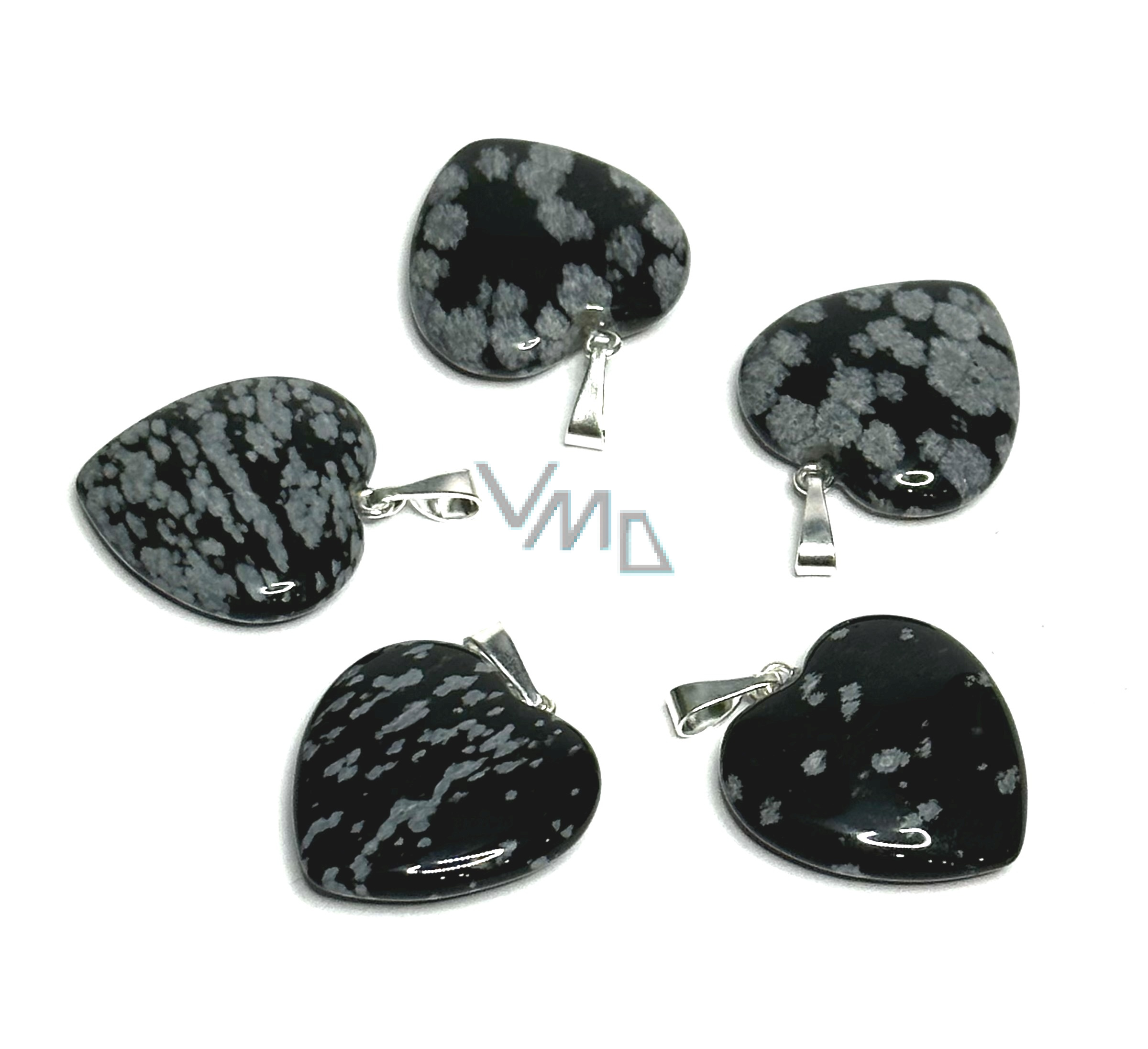 Obsidián vločkový Srdce přívěsek přírodní kámen 20 mm, kámen záchrany