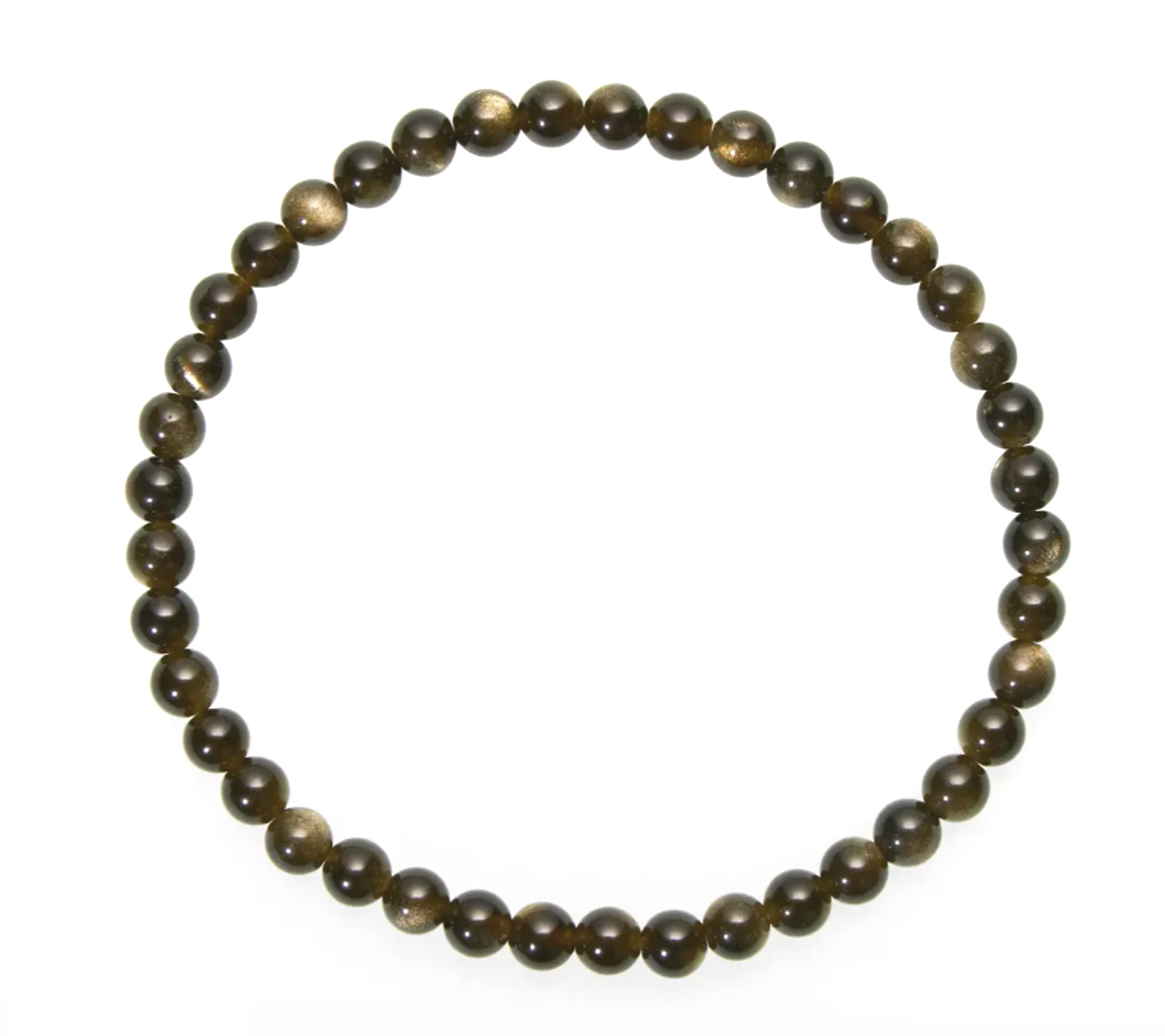 Obsidián zlatý náramek elastický přírodní kámen, kulička 4 mm / 19 cm, kámen záchrany