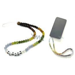 - Přívěsek na telefon disponuje korálky z přírodního kamene na šňůrce, kterou lze upevnit ke krytu telefonu