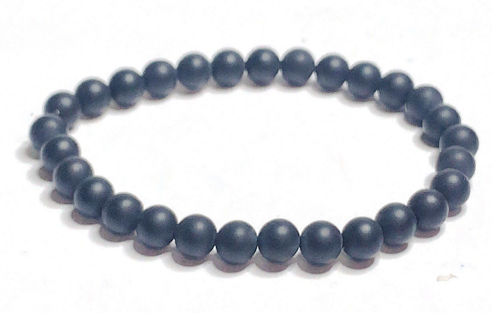 Onyx černý matný náramek elastický přírodní kámen, kulička 6 mm / 16 - 17 cm, kámen životní síly