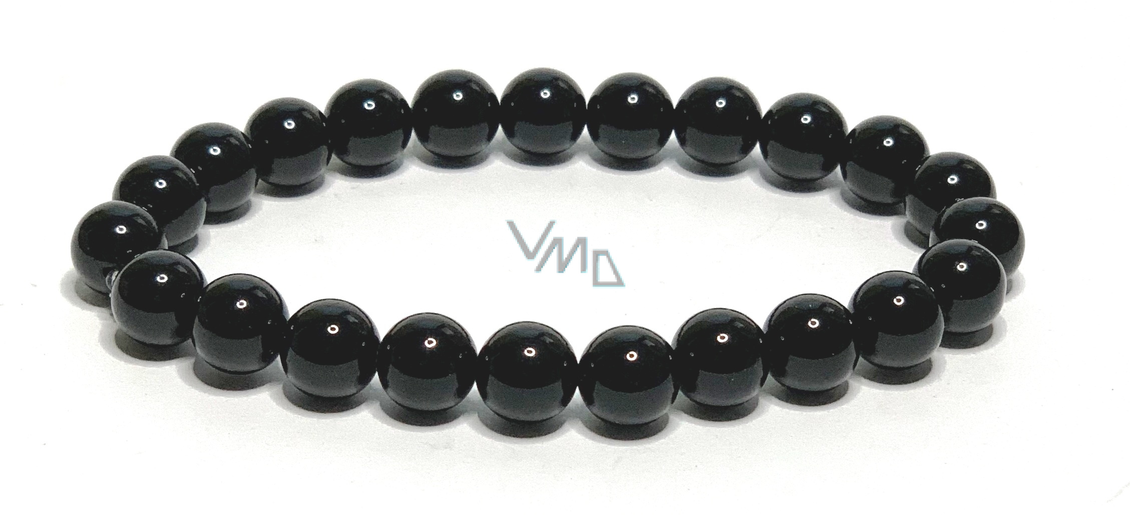 Onyx černý náramek elastický přírodní kámen, kulička 8 mm / 16 - 17 cm, kámen životní síly