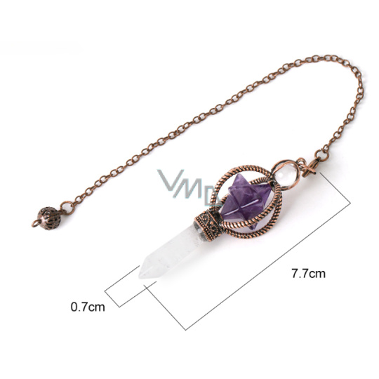 Onyx Merkaba kyvadlo + čirý křemen + bronz, přívěsek z přírodního kamene 7,7 cm, řetízek cca 26,5 cm