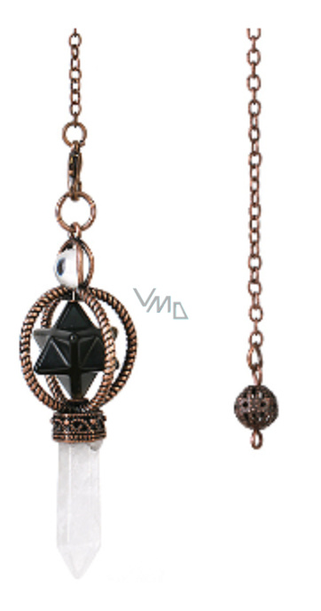 Onyx Merkaba kyvadlo + čirý křemen + bronz, přívěsek z přírodního kamene 7,7 cm, řetízek cca 26,5 cm